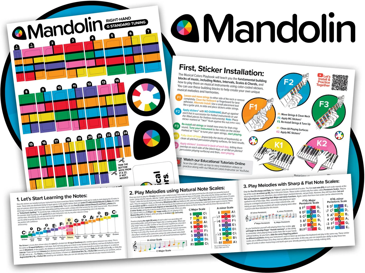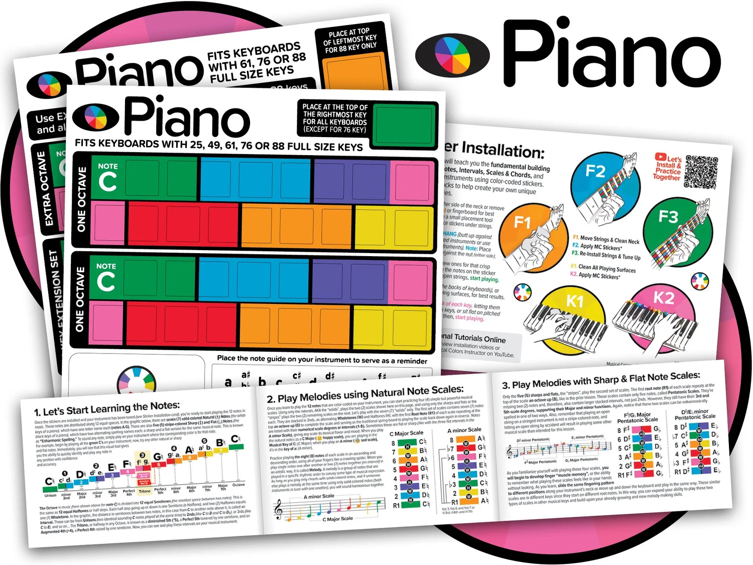 Sticker Guides for musical instruments that Visually unlock All Notes, scales & Chords